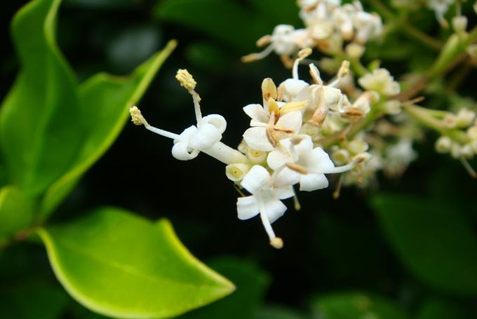 花无梗或近无梗,长不超过1毫米;花萼无毛,长1.5~2毫米,齿不明显或近截形;花冠长4~5毫米,花冠管长1.5~3毫米,裂片长2~2.5毫米,反折:花丝长1.5-3毫米,花药长圆形,长1~1.5毫米;花柱长1.5~2毫米,柱头棒状。女贞的果期7月至翌年5月。女贞的花期5~7月。