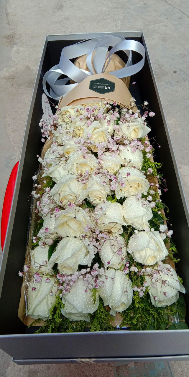 玫瑰真的很素啊,加一点粉色搭配起来别样的小清新,哈哈哈,送人肯定要买礼盒的啦,朋友很喜欢的,说我怎么这么讨人喜欢